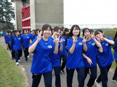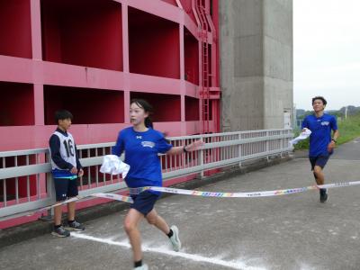 本校の生徒がデザインした踏破会記念タオル(今年度は白)を折り返し地点で受け取り、役員の先生方や周りの応援をもらいながら、それぞれのペースで完走を目指しました。