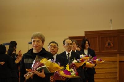 4年間にわたり本校を導き、改革を進めてこられた校長先生の最後のスピーチは、ユニークでありながら新たな視点を与えてくださる、明るく心に残るものでした。また、離任される先生方のお話からは、生徒との心温まるエピソードが語られ、驚きとともに寂しさが込み上げるひとときとなりました。